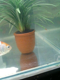金魚って赤か紅白のイメージしかありませんでしたがこういう色も魅力的です。餌も昨日はじめて