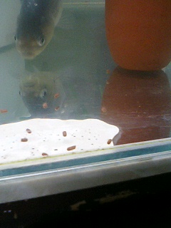 あげたのに水槽に手を掛けただけで真っ先に寄ってきてパクパクしてました。きっとショップでも可愛がってもらっていたのだろう。